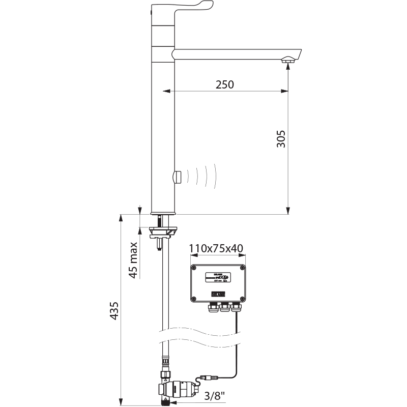 - Opbouwhoogte onderkant kraanmondstuk: 305 mm