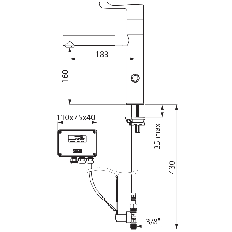 - Opbouwhoogte onderkant kraanmondstuk: 160 mm
