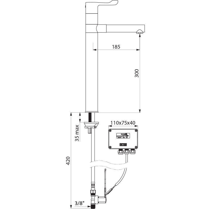 - Opbouwhoogte onderkant kraanmondstuk: 300 mm