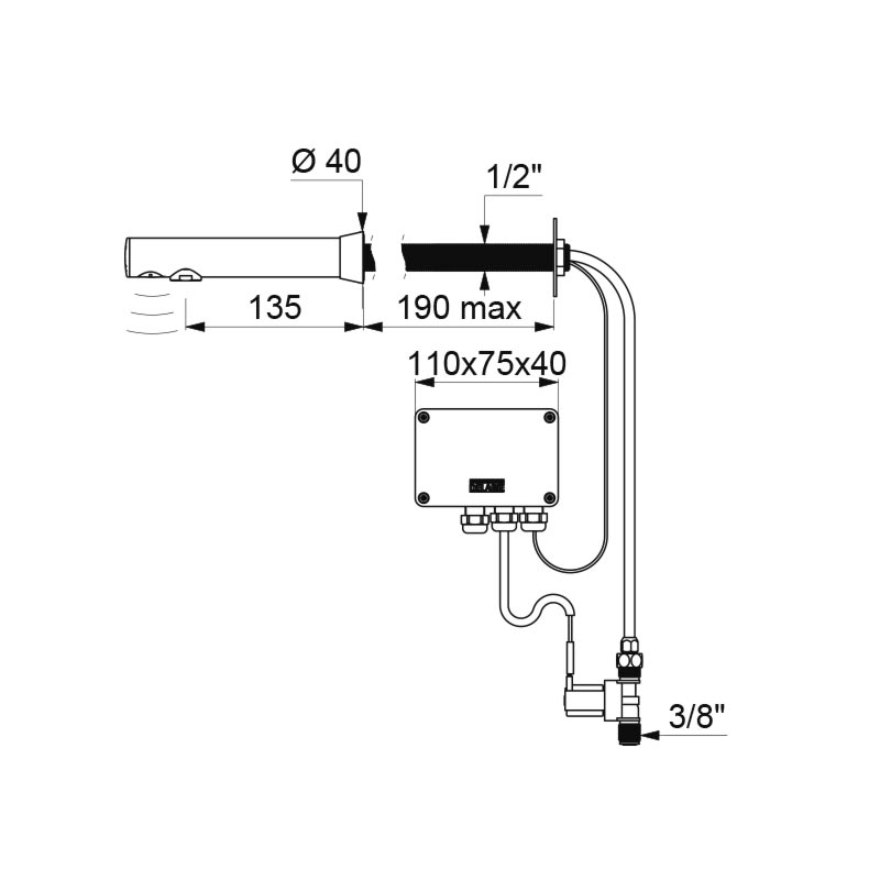 Wastafelkraan M3/8" 190 uitloop L.135 net + transfo Delabie