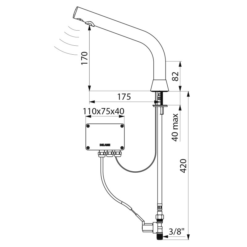 Wastafelkraan M3/8" H.170mm op netspanning 230/12V Delabie