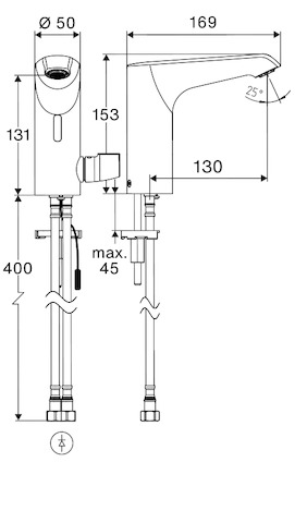 - Opbouwhoogte onderkant kraanmondstuk: 130 mm