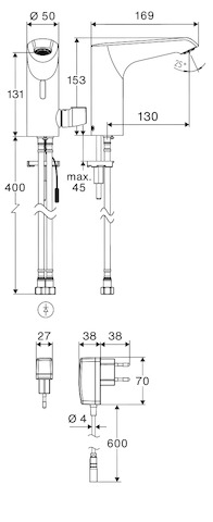 - Opbouwhoogte onderkant kraanmondstuk: 130 mm