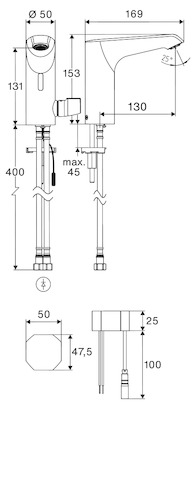 - Opbouwhoogte onderkant kraanmondstuk: 130 mm