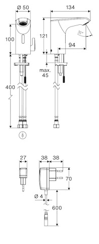 Wastafelmengkraan elektronisch XERIS E² HD-M small mengwater stekkertrafo chroom Schell