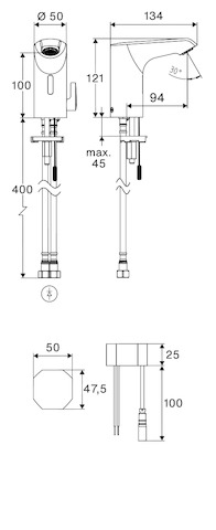 Wastafelmengkraan elektronisch XERIS E² HD-M small mengwater inbouwtrafo chroom Schell