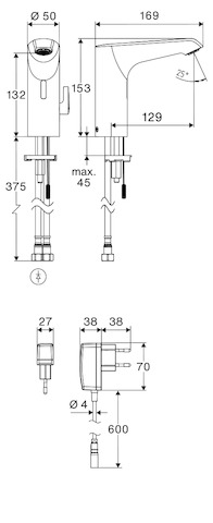 Wastafelmengkraan elektronisch XERIS E² HD-M medium mengwater stekkertrafo chroom Schell