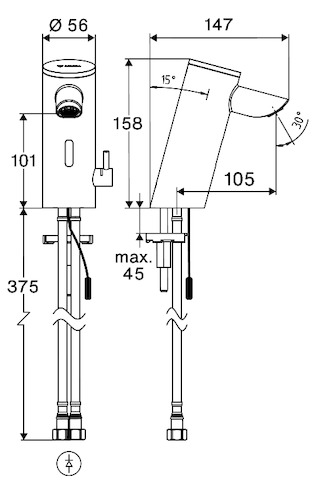 Wastafelmengkraan elektronisch PURIS E² HD-M mengwater chroom excl. stroomvoorziening Schell