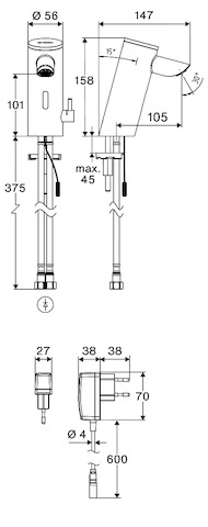 Wastafelmengkraan elektronisch PURIS E² HD-M mengwater stekkertrafo chroom Schell