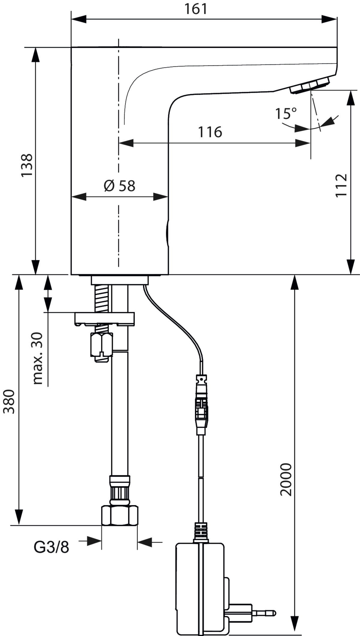 Medical & Care wastafelkraan chroom infrarood elektrisch 230 Ideal Standard