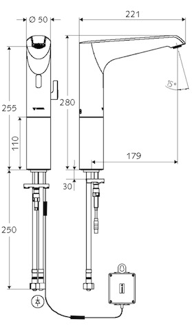 - Opbouwhoogte onderkant kraanmondstuk: 255 mm