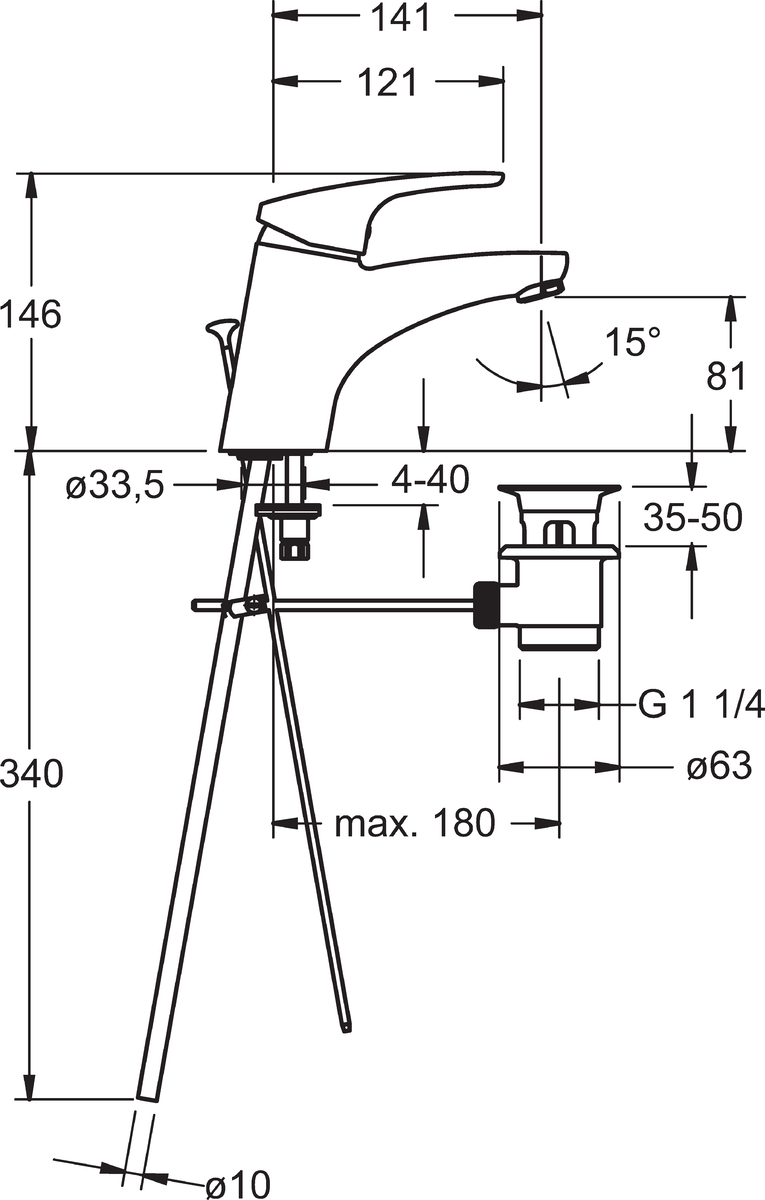 - Type afvoeraansluiting: Pop-up plug met verticale hefboom