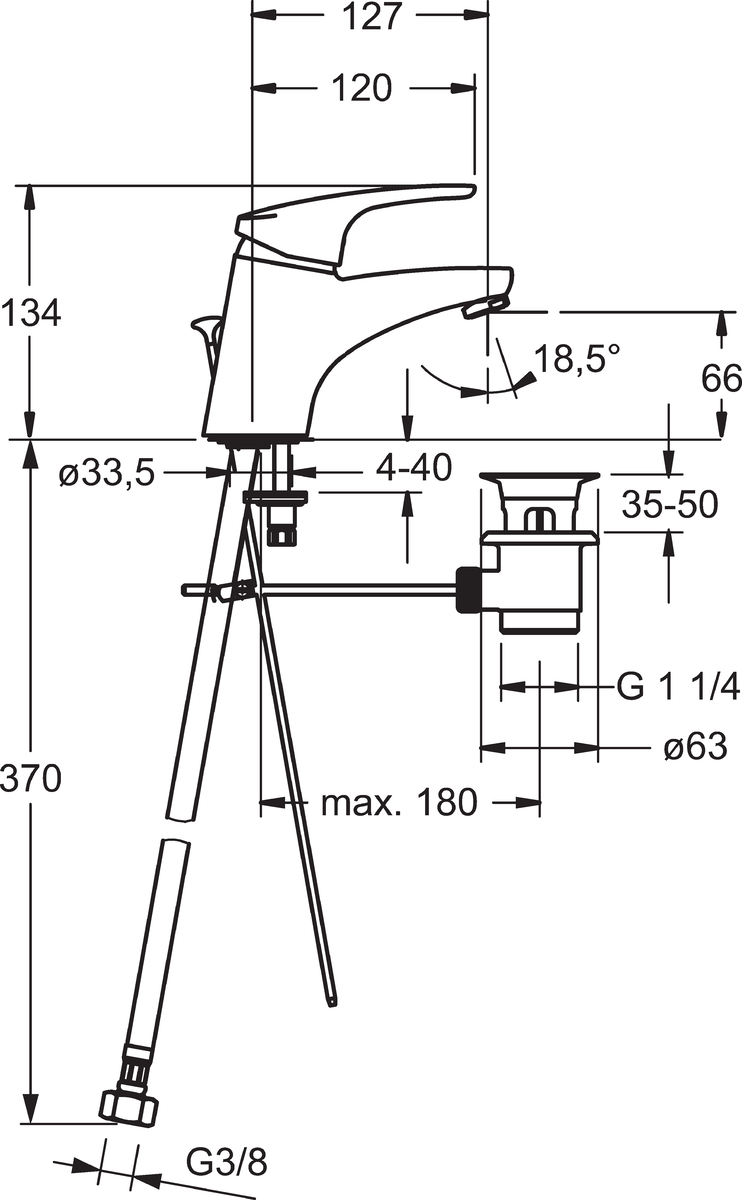 Mix wastafelmengkraan vaste uitloop met waste 3/8"flex 01102283 HANSA
