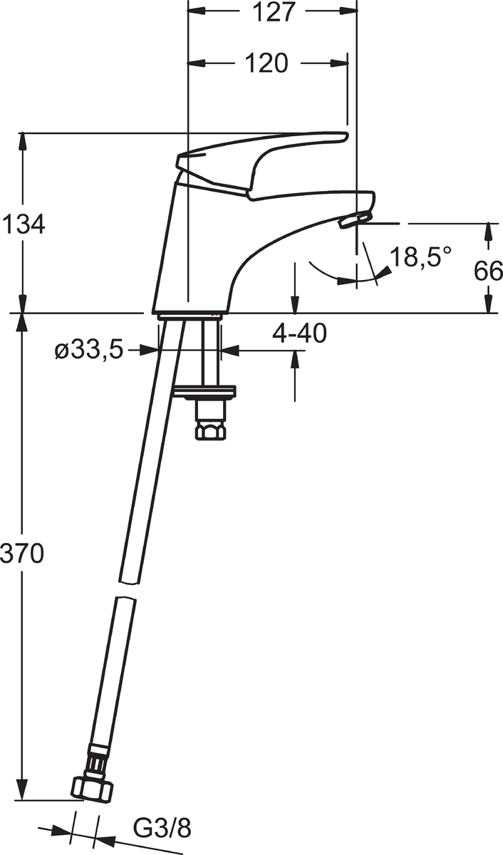 Mix wastafelmengkraan vaste uitloop zonder boorgat 3/8"flex HANSA