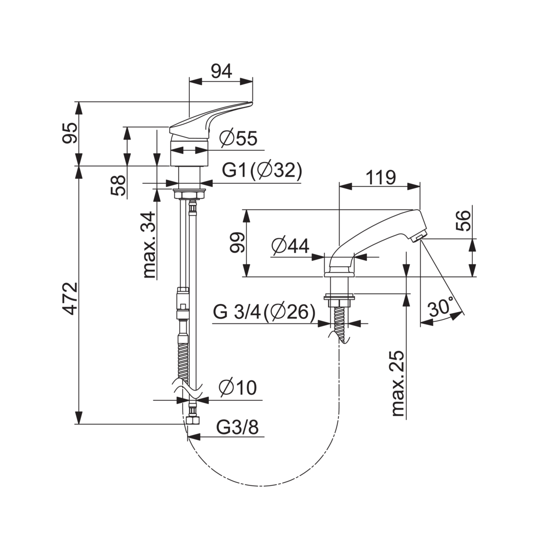 - Maat aansluiting aanvoer: 10 mm