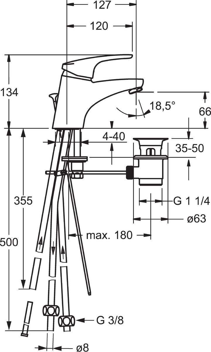 - Type afvoeraansluiting: Pop-up plug met verticale hefboom