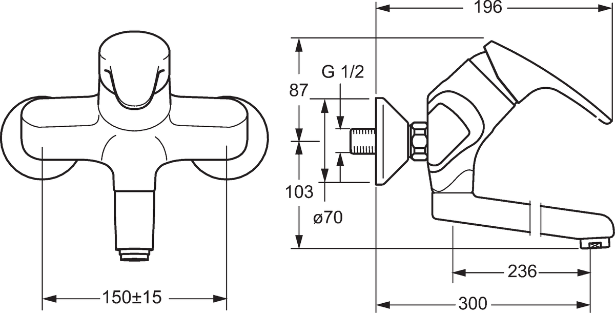 Mix wandmengkraan chroom draaib. uitloop 300mm m.S-kopp HANSA