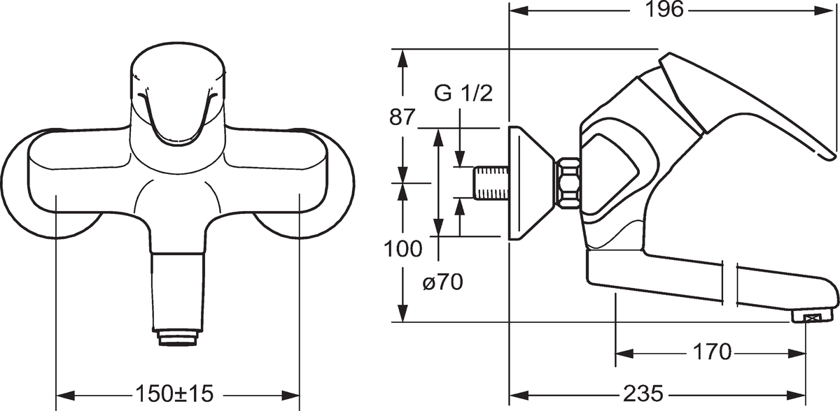 Mix wandmengkraan HOH 15 chroom m.S-koppeling uitloop 235mm HANSA