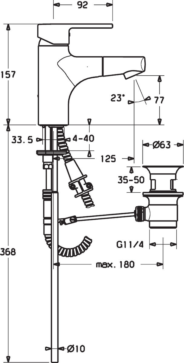 - Type afvoeraansluiting: Pop-up plug met verticale hefboom