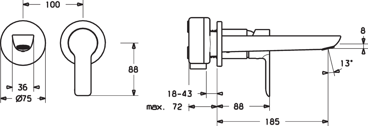 2-gats afbouwset wastafelmengkraan vaste uitloop HANSA