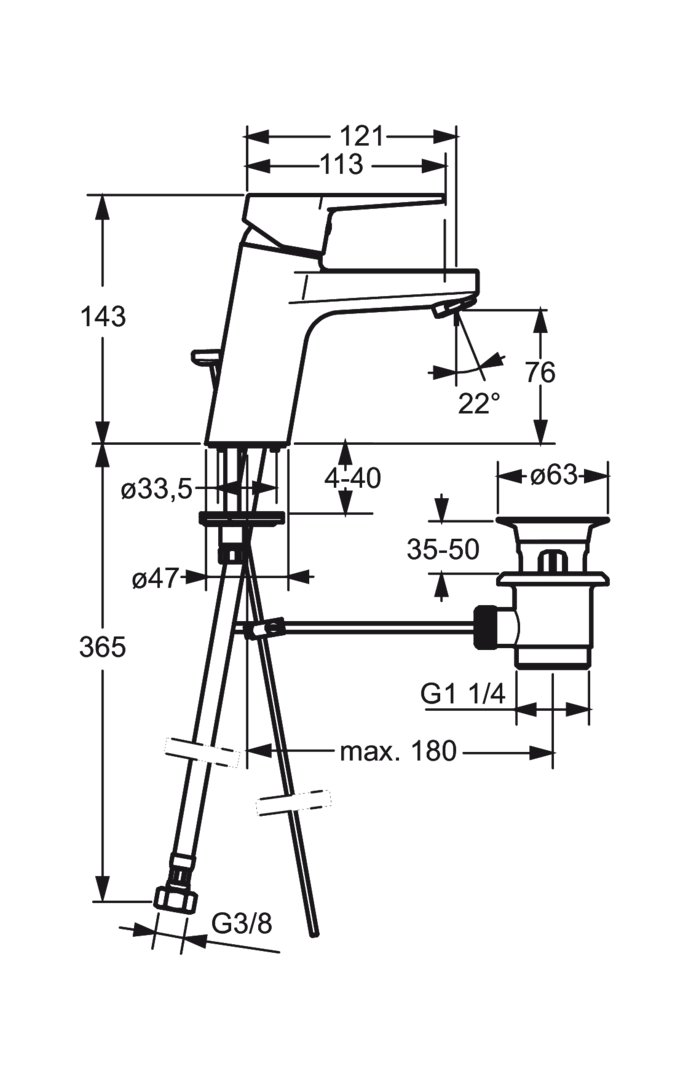 • Type afvoeraansluiting: Pop-up plug met verticale hefboom