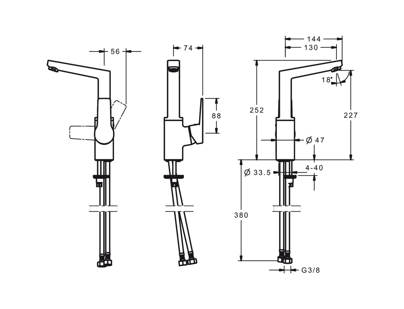 • Maat aansluiting aanvoer: 3/8" (10)