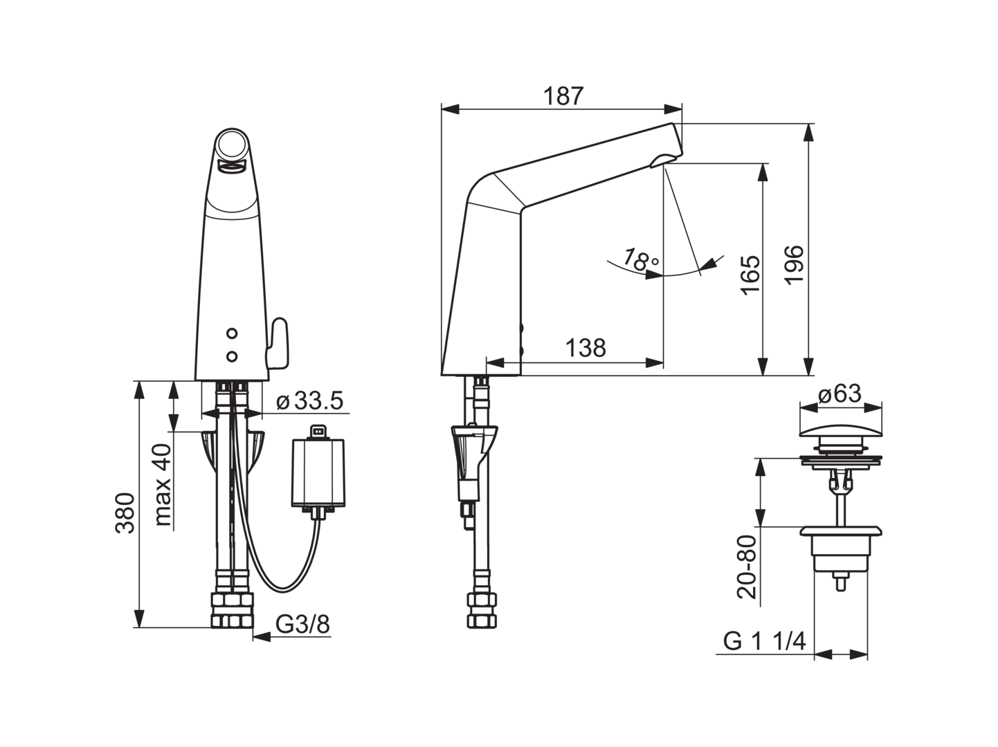 - Type elektronische bediening: Sensor