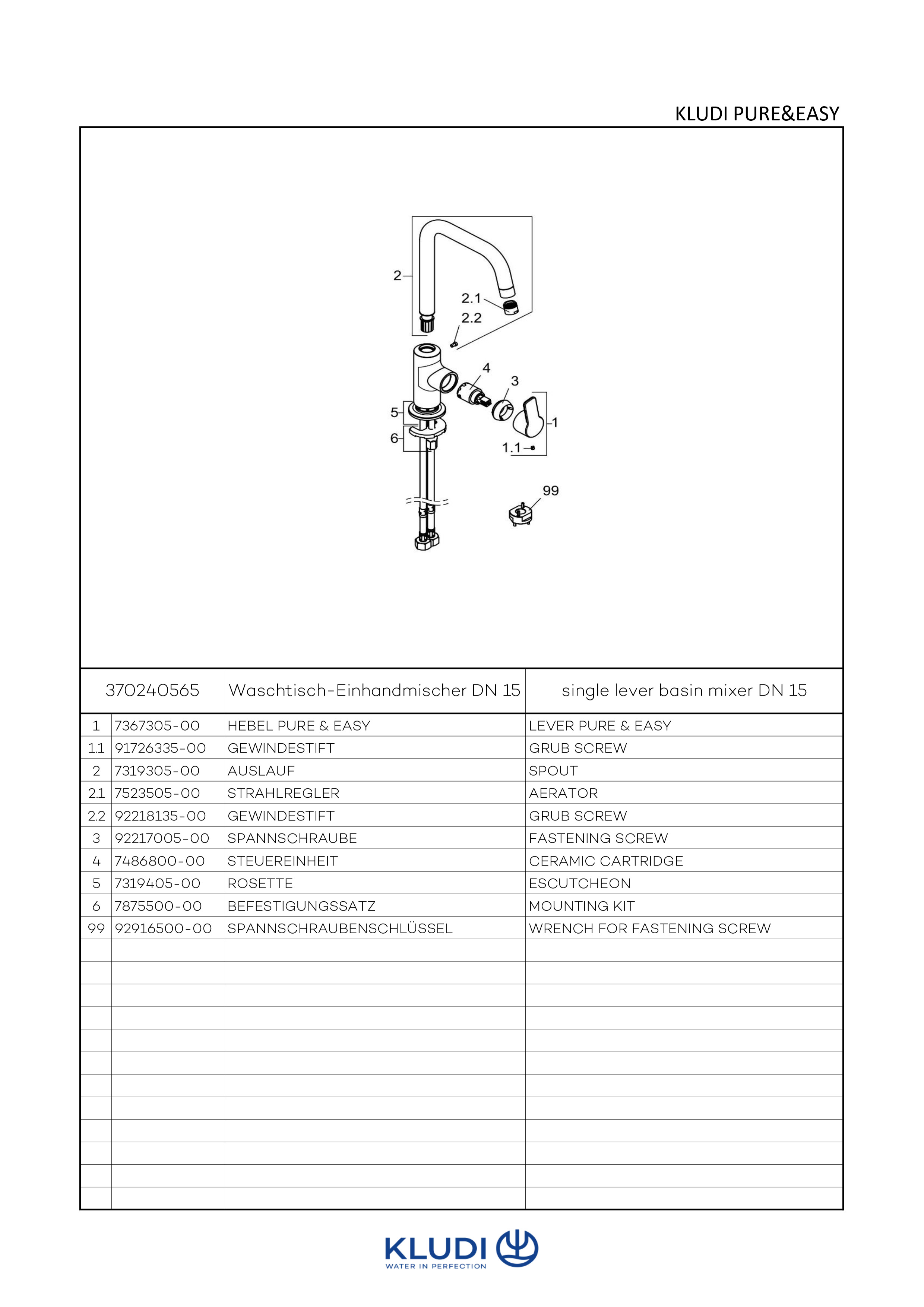 pure&easy wastafelmengkraan z.waste 205 chroom Kludi