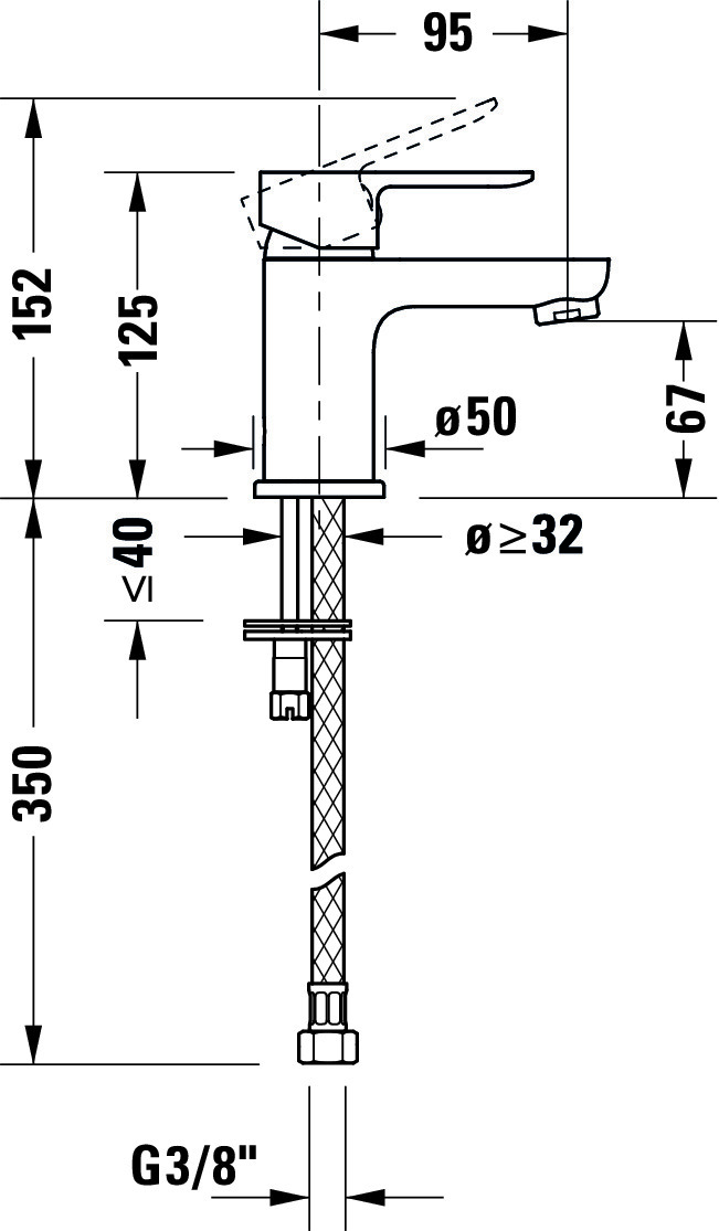 - Opbouwhoogte onderkant kraanmondstuk: 67 mm