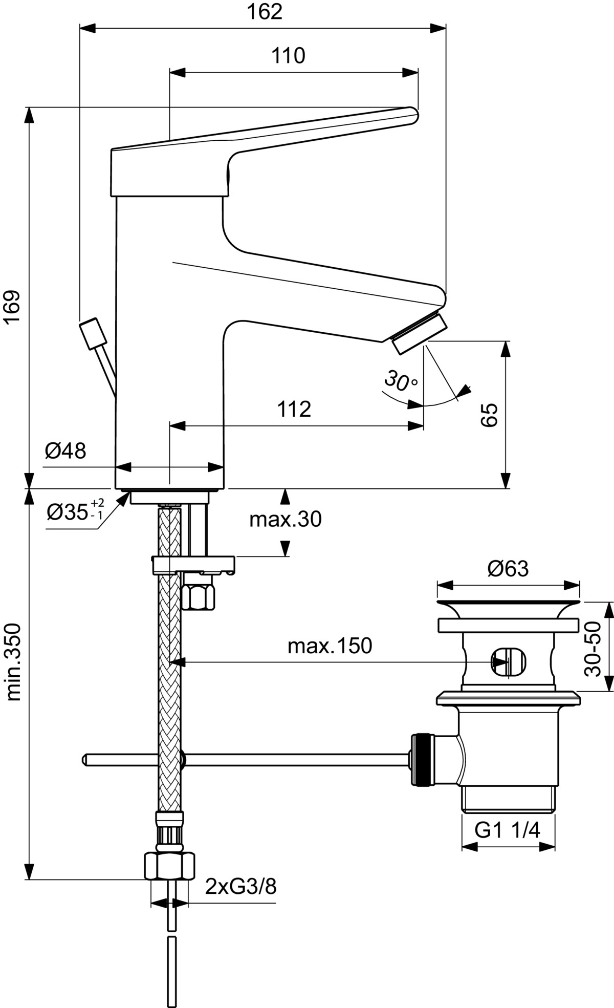 Ceraplus 2 wastafelmengkraan chroom incl. waste/greep 110mm Ideal Standard
