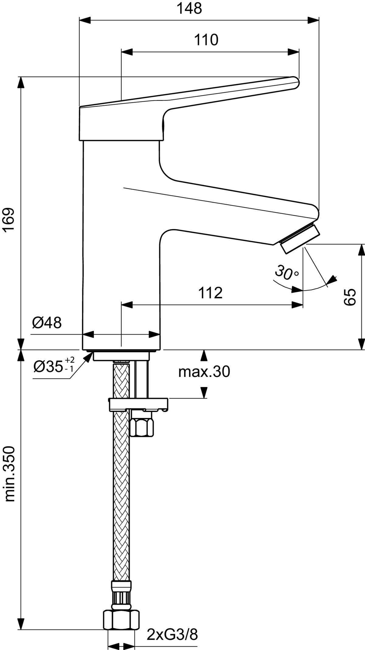 - Opbouwhoogte onderkant kraanmondstuk: 65 mm