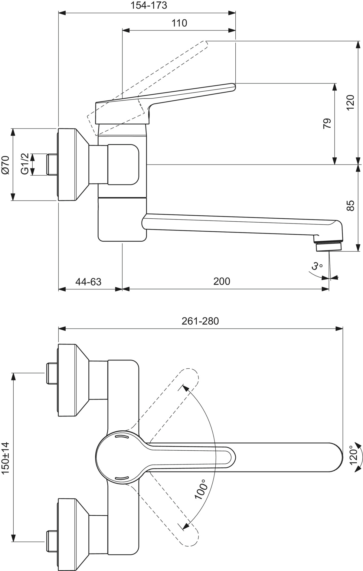Ceraplus 2 wandmengkraan chroom incl. draaibare uitloop 200mm incl. afsluitbare s-koppeling Ideal Standard