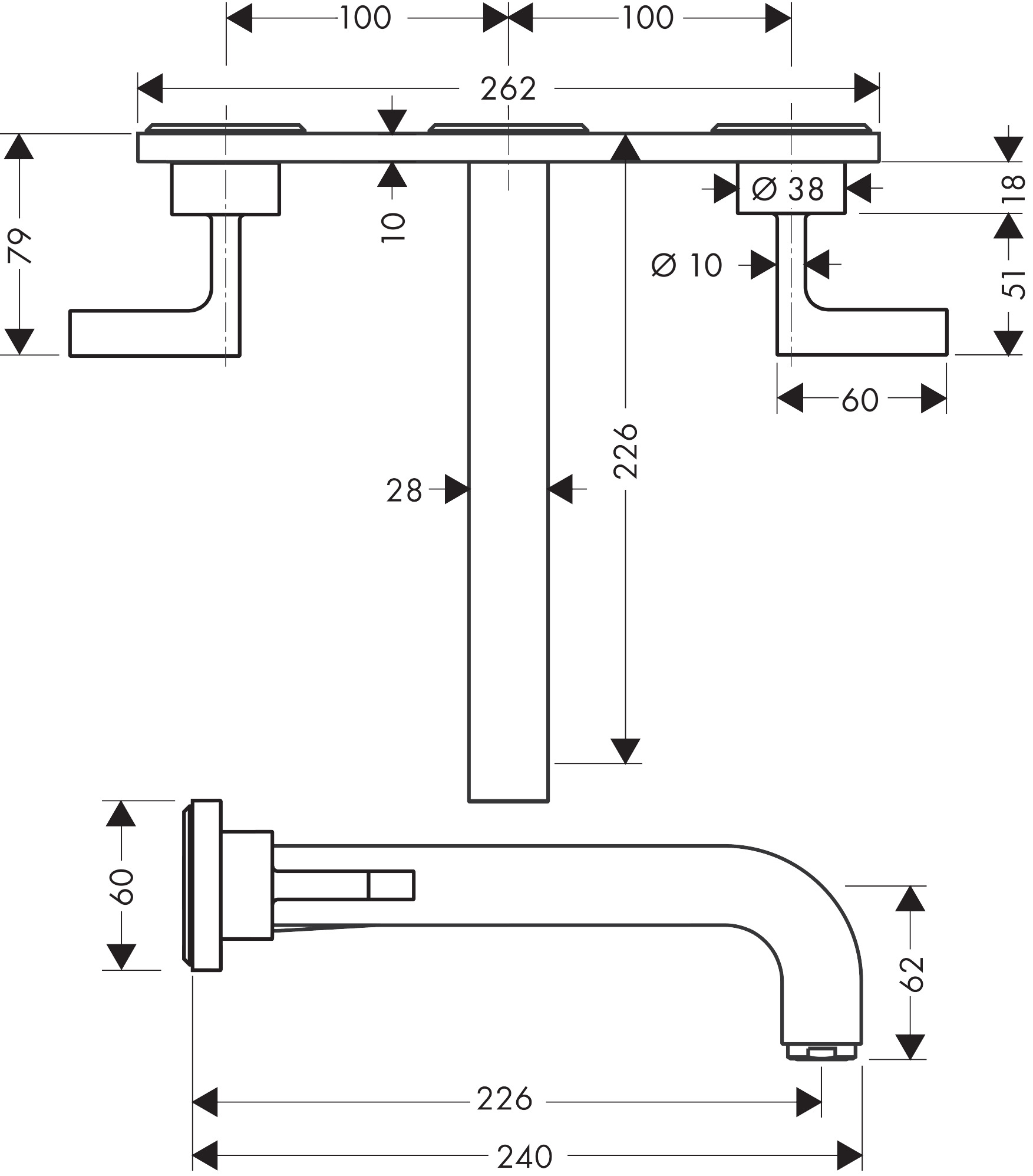 Afbouwdeel AXOR Citterio 3-gats wandmengkraan+lange uitl+rechte gr chroom 39148000 hansgrohe