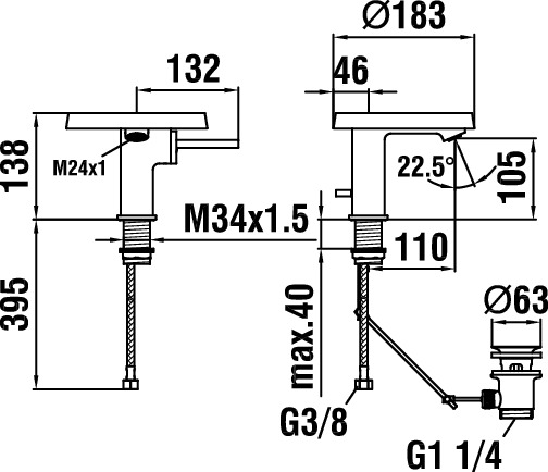 1-gats wastafelmengkraan met waste voorsprong 110 chroom Laufen
