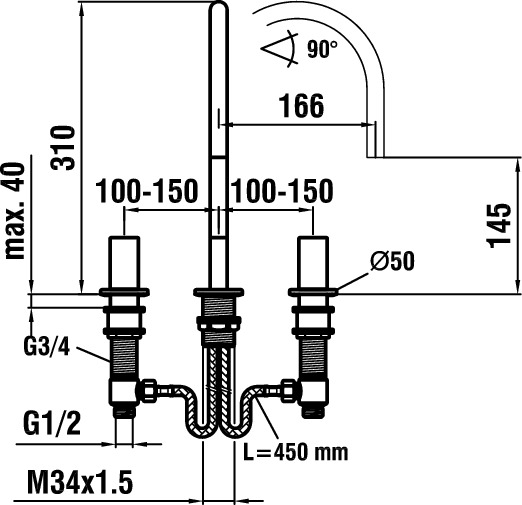 3-gats wastafelmengkraan zonder waste voorsprong 165 chroom Laufen
