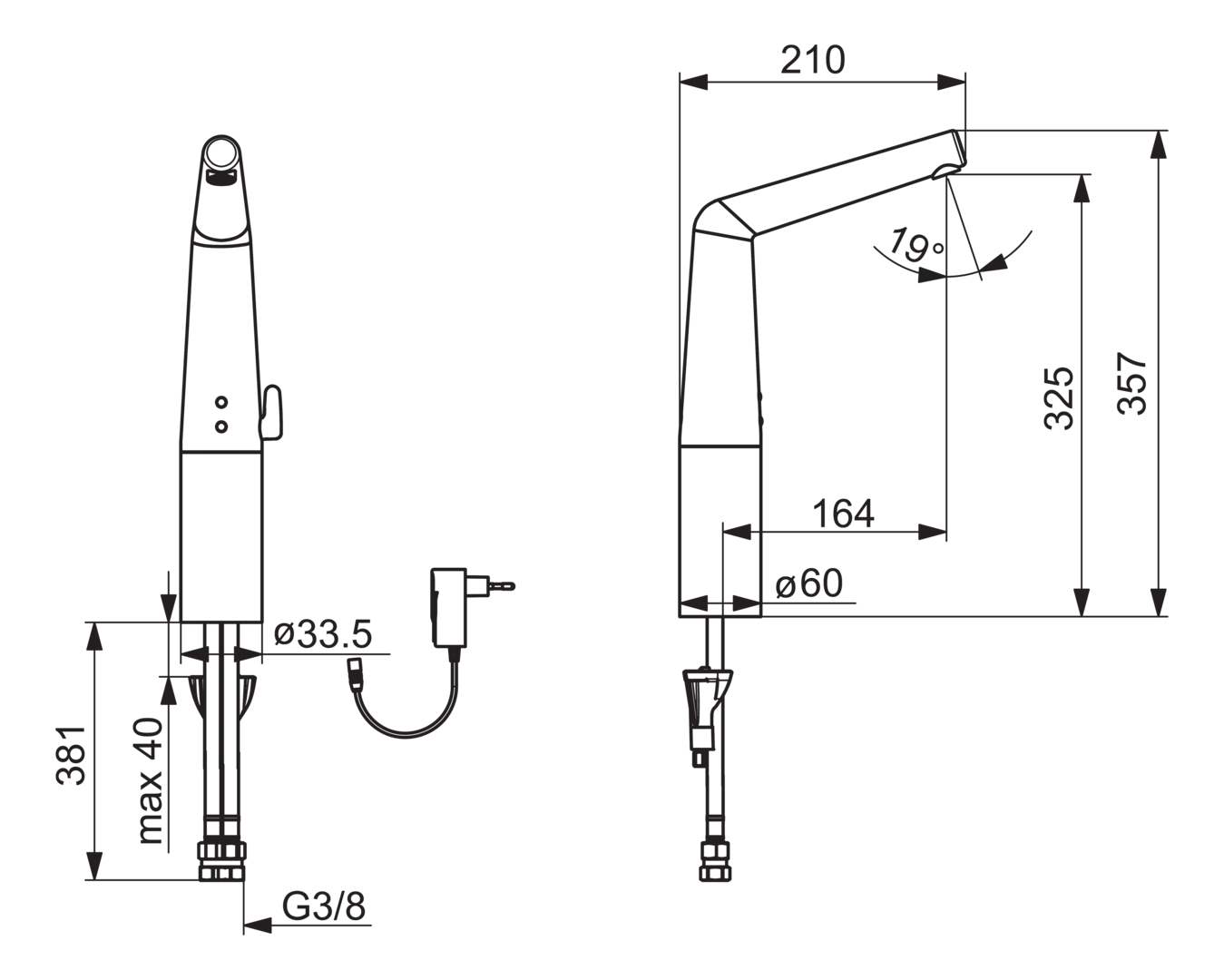 Elektronische wastafelmngkraan netvoeding HANSADESIGNO-STYLE HANSA