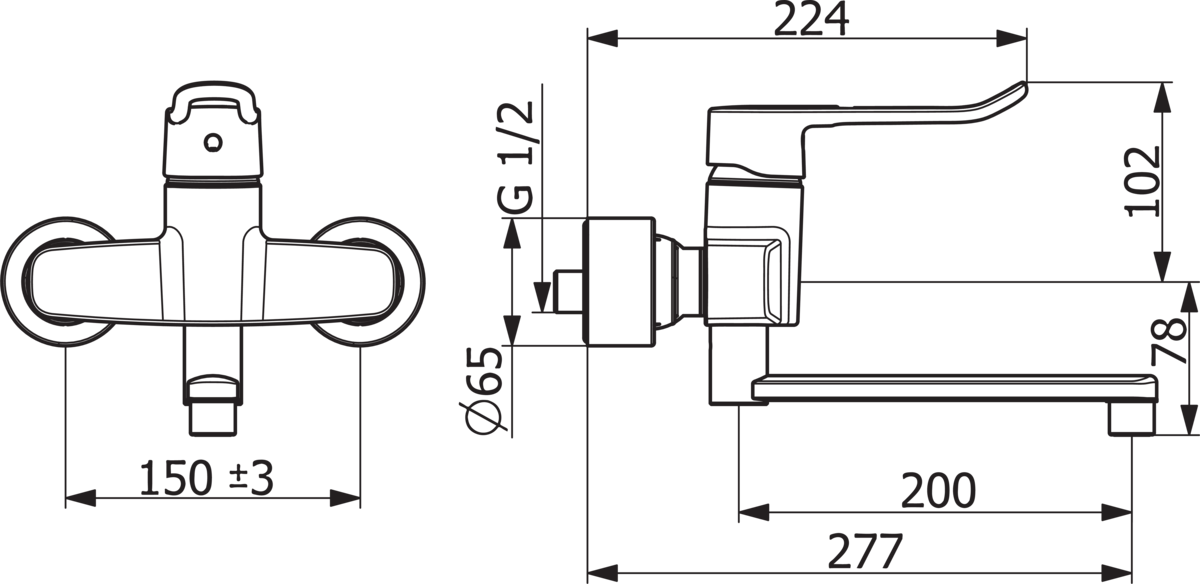 Wandmkr draaib.uitl spr277mm beugel lang hendel HANSACLINICA HANSA