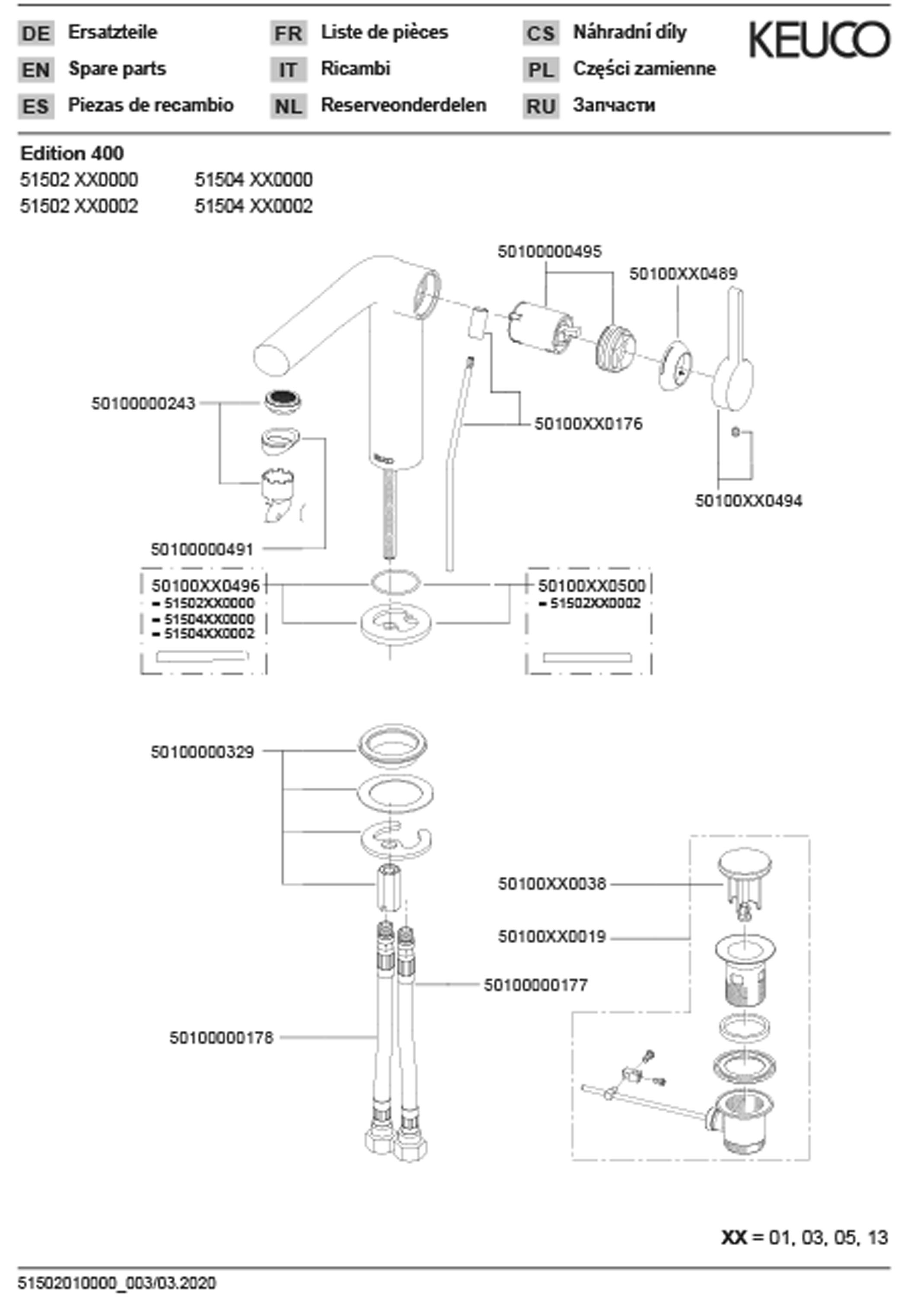 1-hendel wastafelmengkraan 120 trekstang afvoergar. 51504030002 KEUCO