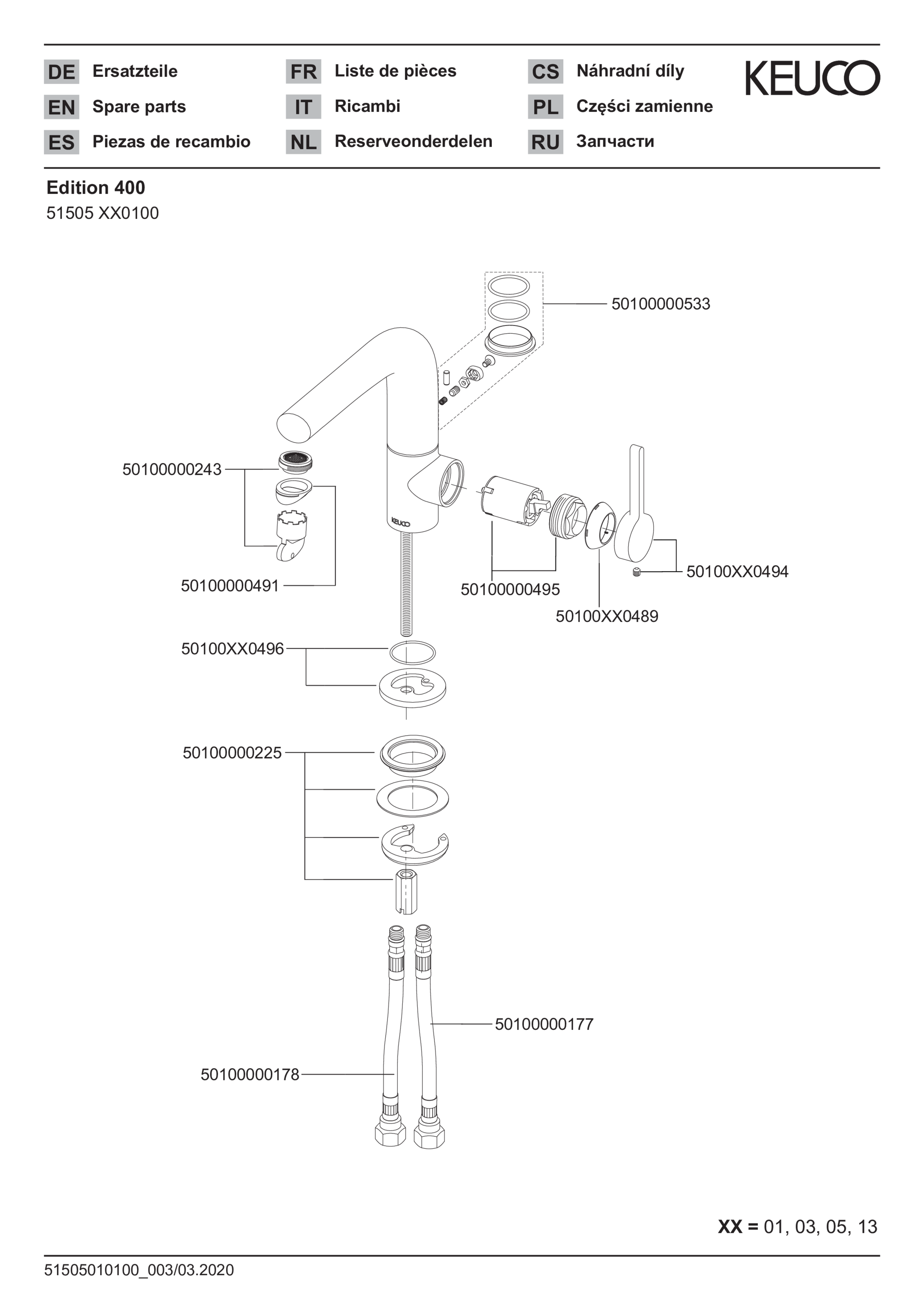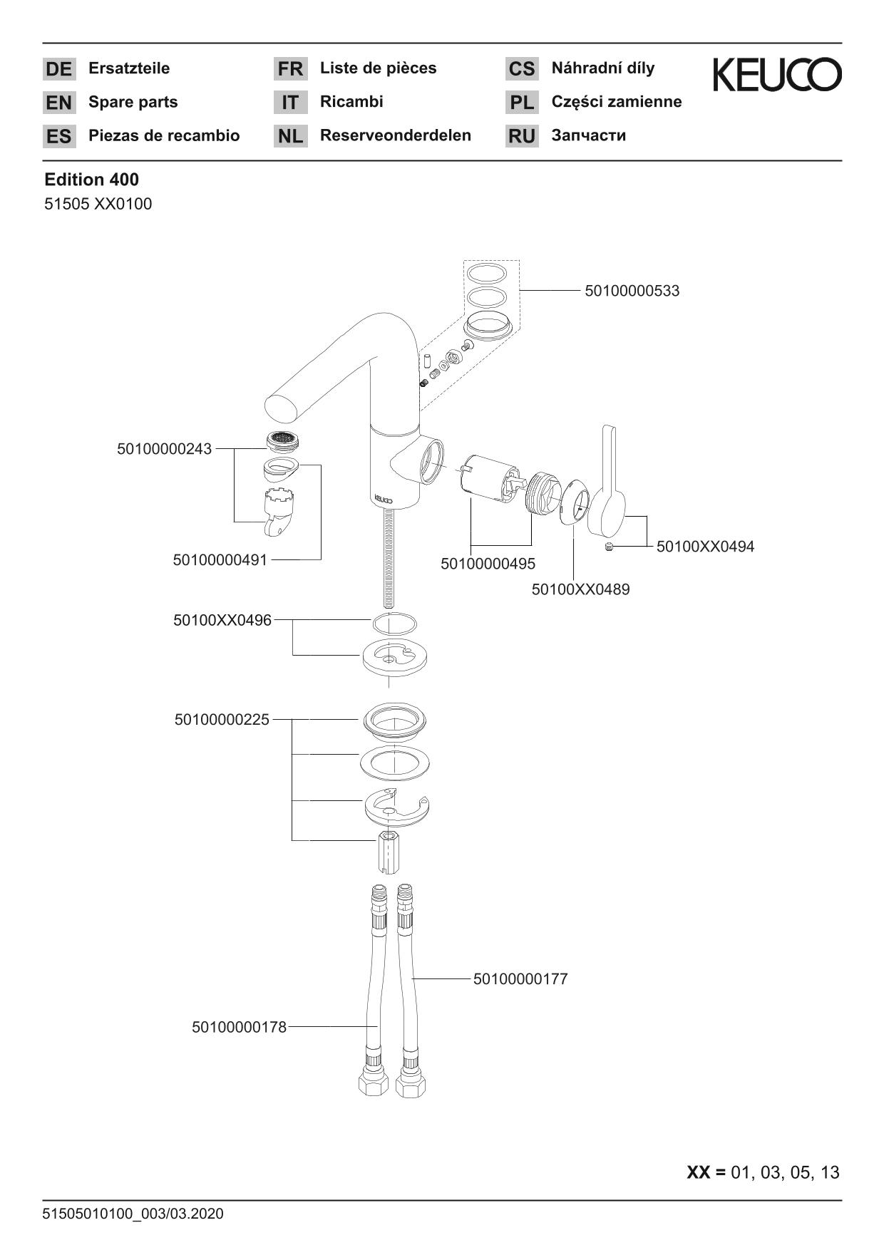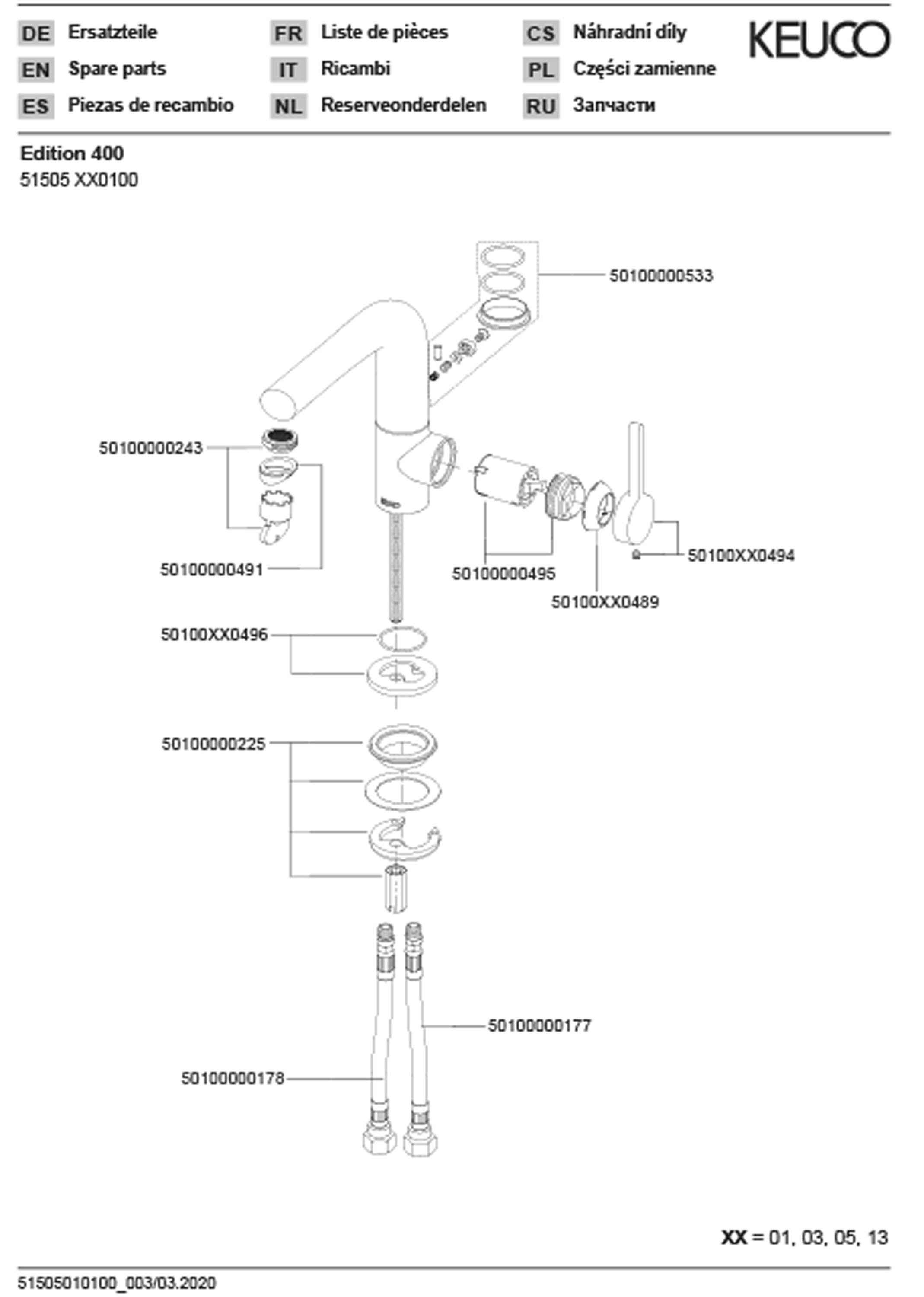 1-hendel Wastafelmengkraan z.trekstang 51505010100 KEUCO