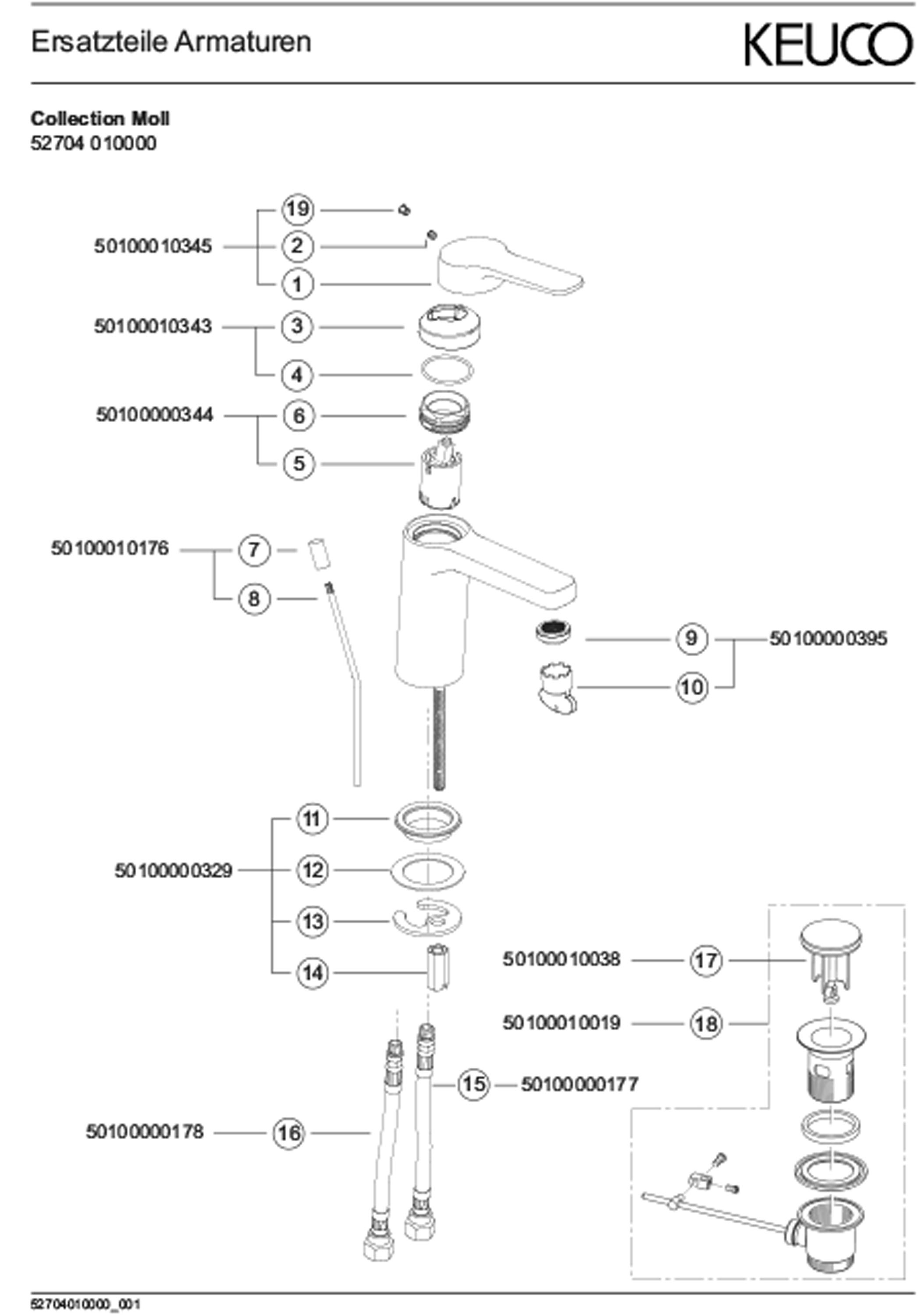 E+hendel wastafelkraan m.trekstang + afvoergarn. 52704010000 KEUCO