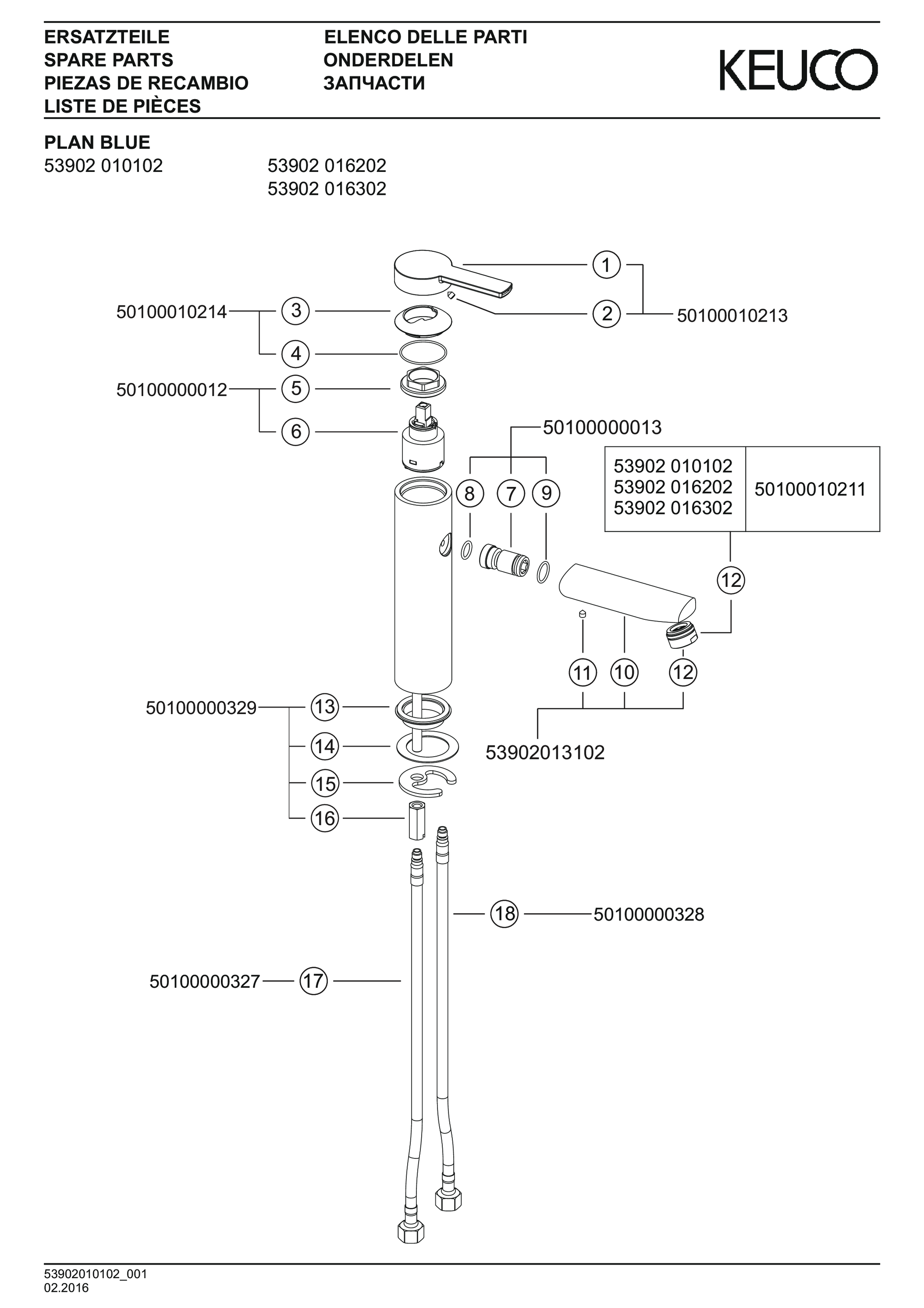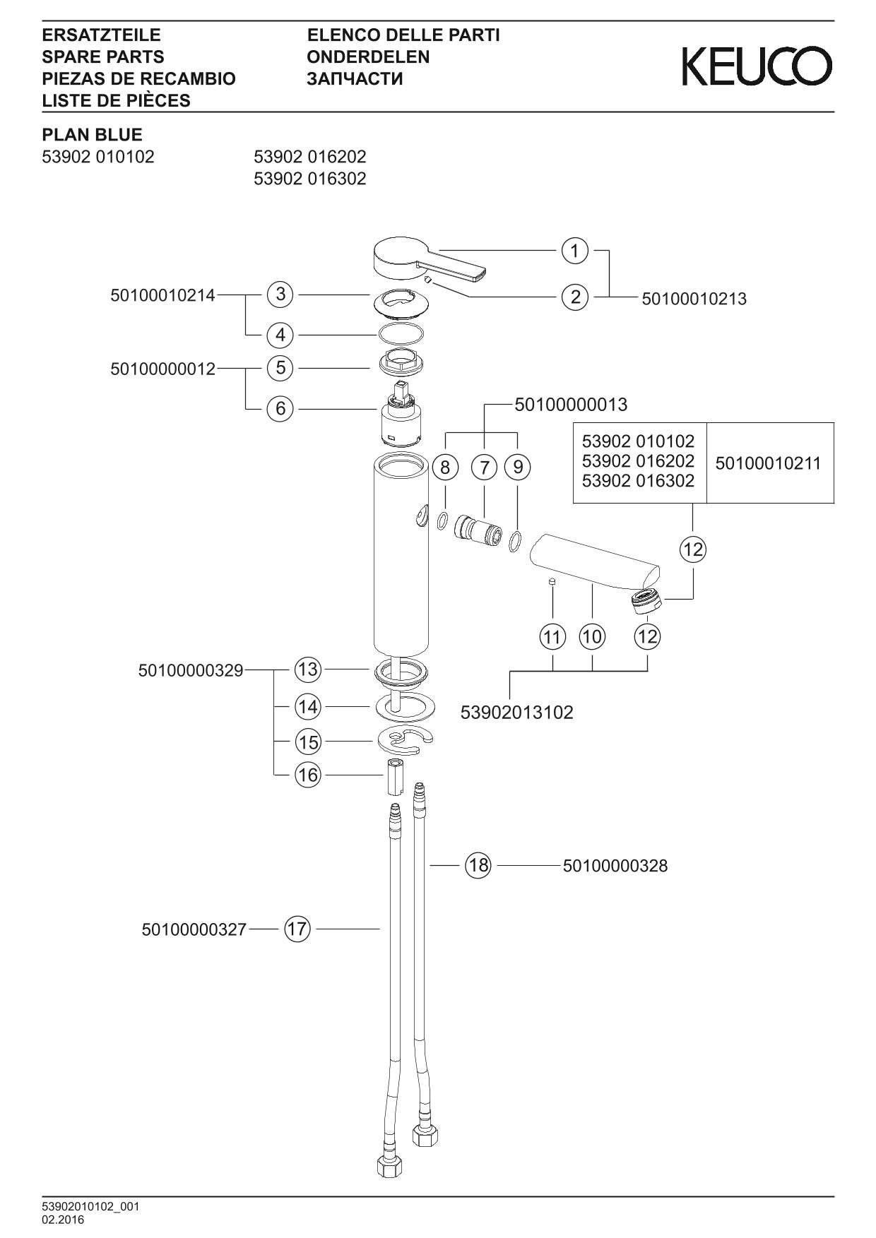1-hendel wastafelmengkraan 130 53902010102 KEUCO