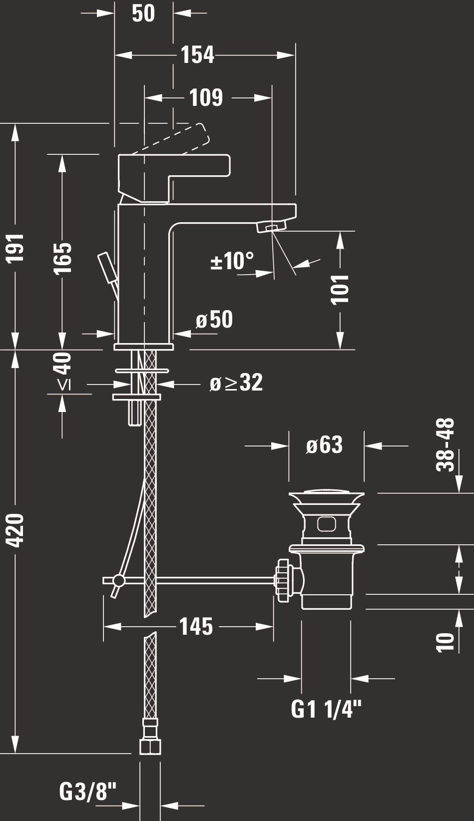 D-Neo wastafelmengkraan 1-hendel sprong 109mm chroom incl. aansluitslangen + waste-inrichting Duravit