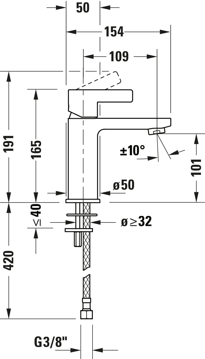 D-Neo wastafelmengkraan FreshStart 1-hendel sprong 109mm chroom incl. aansluitslangen Duravit