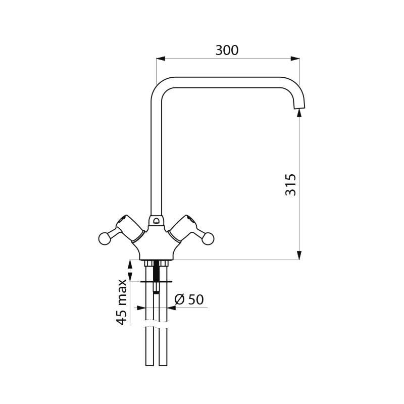 - Opbouwhoogte onderkant kraanmondstuk: 317 mm