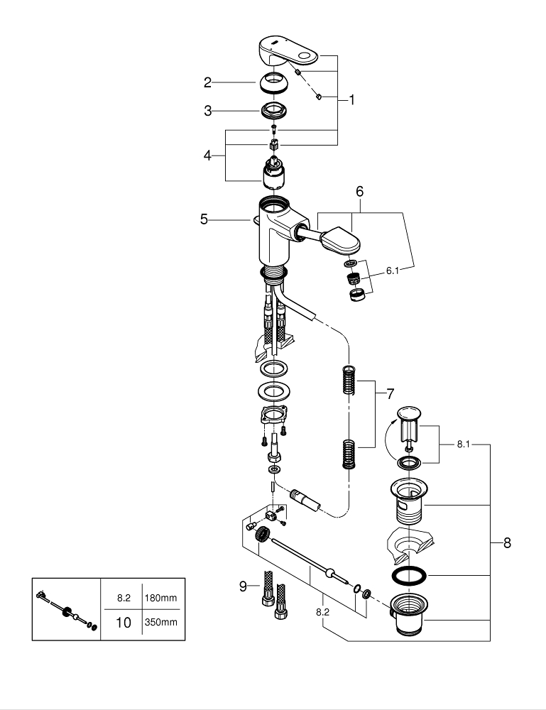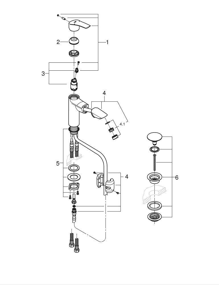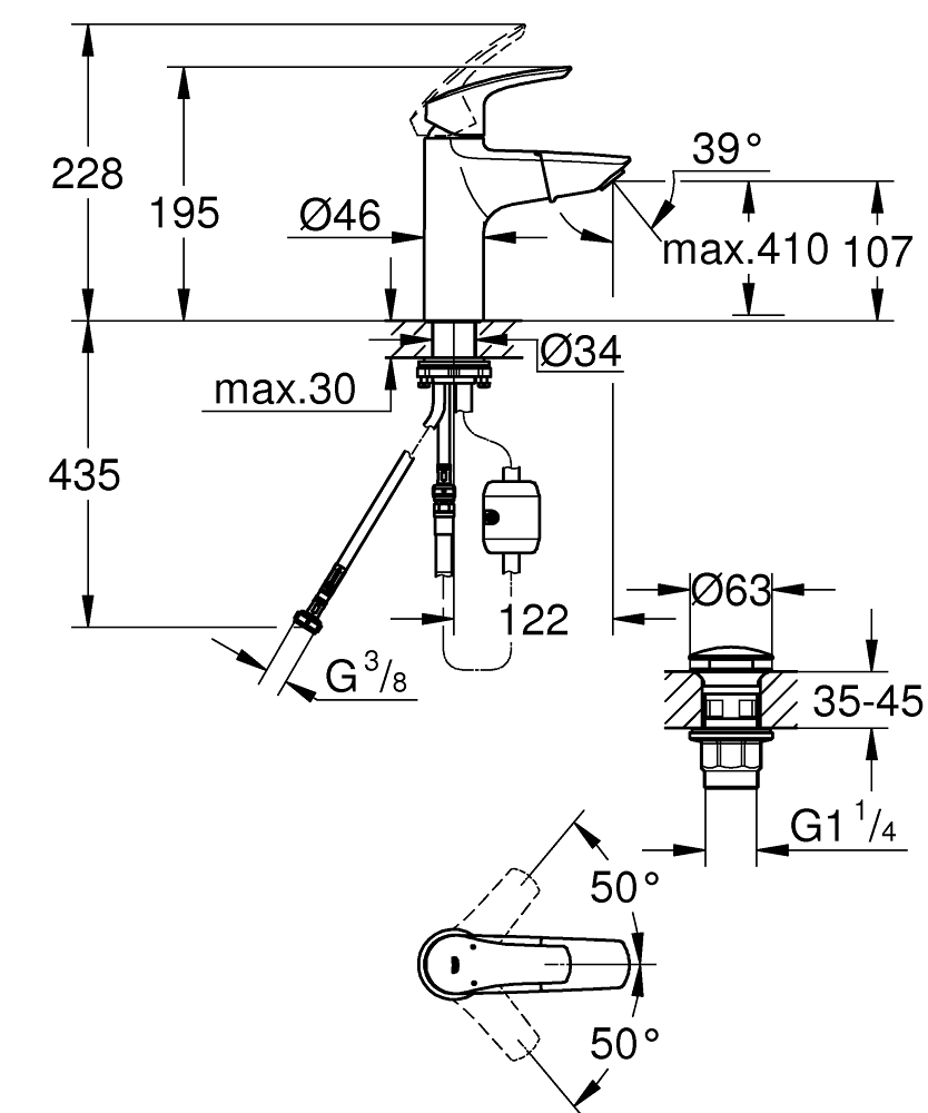 Eurosmart M-size wastafelmengkraan met uittrekbare uitloop incl. push-open plug 1.1/4" (prof) Grohe