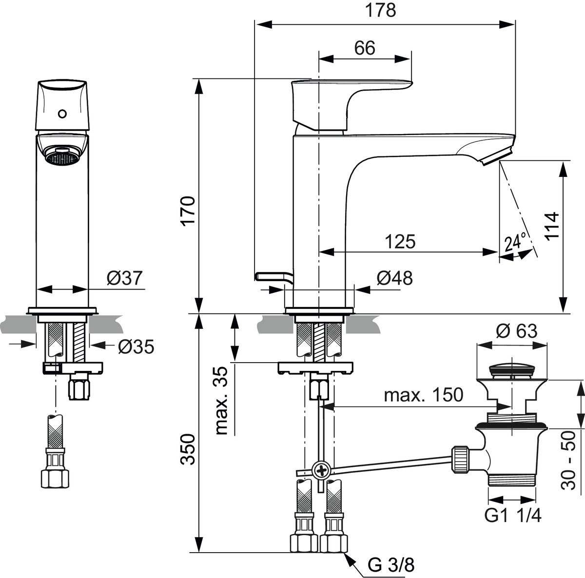 - Opbouwhoogte onderkant kraanmondstuk: 114 mm