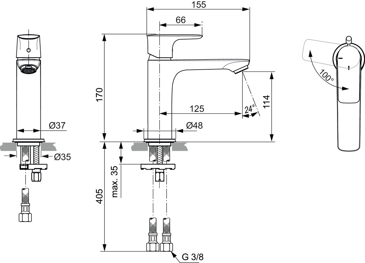 - Opbouwhoogte onderkant kraanmondstuk: 114 mm