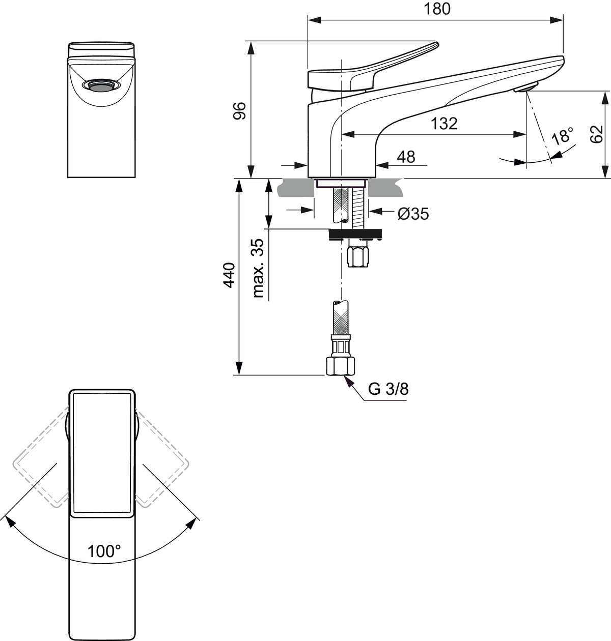 - Opbouwhoogte onderkant kraanmondstuk: 62 mm