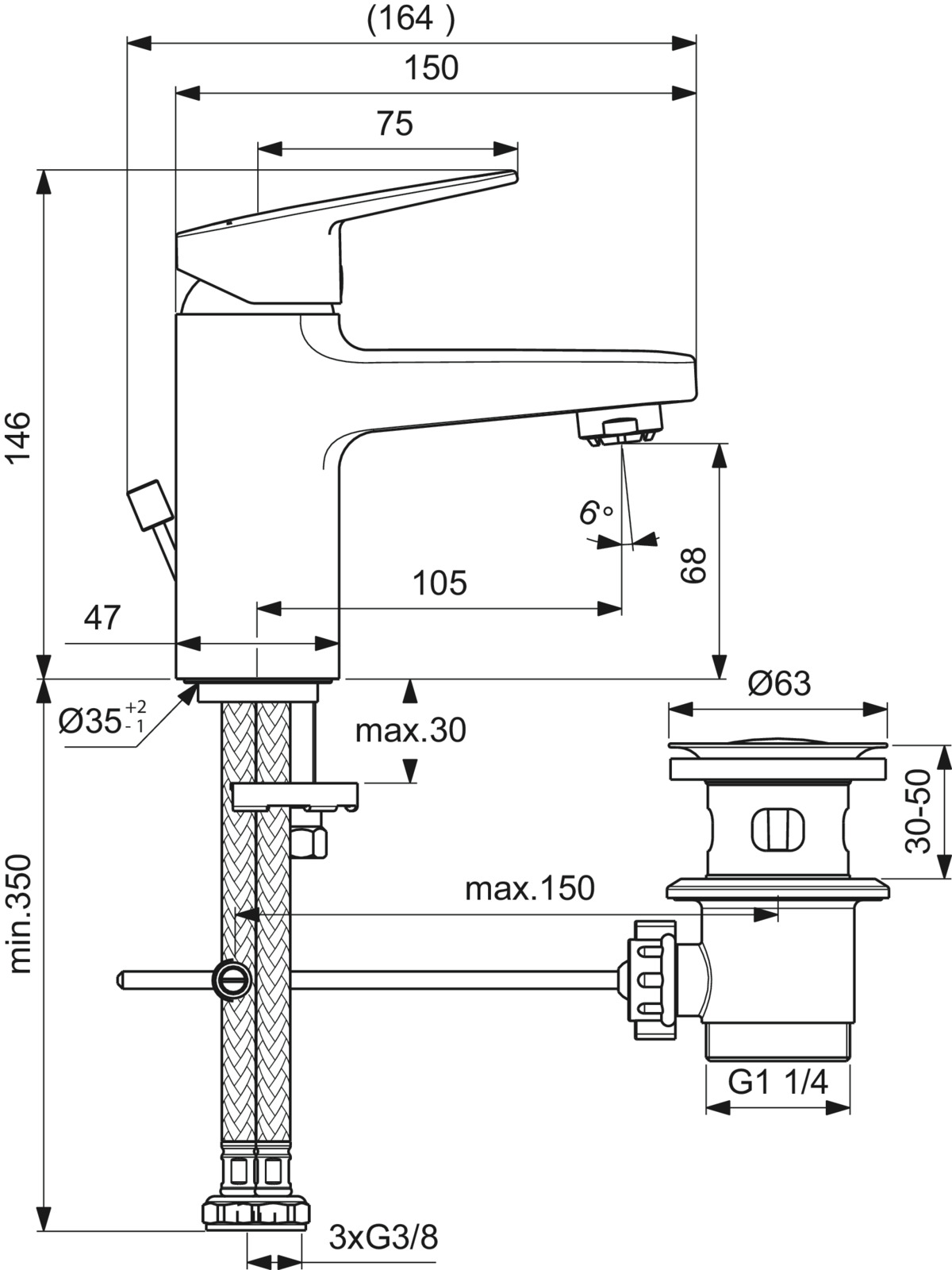 ceraplan wastafelmengkraan m waste lage druk h70 chroom BD217AA Ideal Standard
