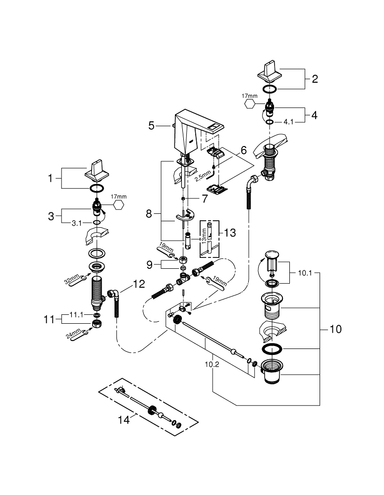 Allure brilliant 3-gats wastafelmengkraan Laag incl. waste chroom (Spa colors coll.) Grohe